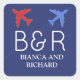 Adesivo Quadrado aviões viagem azuis vermelhos com nomes, monograma