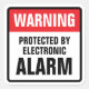Alarme o adesivo de segurança de aviso com Warning Protected by Electronic Alarm para ajudar a proteger a área ou objetos de entrada.