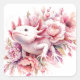 Adesivo Quadrado Axolotl De Aquarelas Entre Flores Rosa