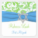 Adesivo Quadrado Azul, Branco, Damasco Verde Bat Mitzvah Sticker