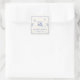 Adesivos creme claro caprichosos para seus anúncios de save the date, festa de noivado, jantar de ensaio, convites de casamento e recepção, e lembranças de festa com uma borda de quadro ondulado rendilhado azul francês adornada com laços coquete, ilustrações caprichosas desenhadas à mão de um coração, estrelas e taças de vinho, e os nomes da noiva e do noivo apresentados em uma fonte azul divertida.