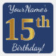 Adesivo Quadrado Azul, Faux Dourado 15 Aniversário + Nome Personali