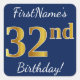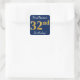 Adesivo Quadrado Azul, Faux Dourado 32º Aniversário + Nome Personal