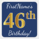 Adesivo Quadrado Azul, Faux Dourado 46º Aniversário + Nome Personal