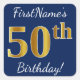 Adesivo Quadrado Azul, Faux Dourado 50º Aniversário + Nome Personal