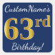 Adesivo Quadrado Azul, Faux Dourado 63º Aniversário + Nome Personal