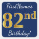 Adesivo Quadrado Azul, Faux Dourado 82º Aniversário + Nome Personal
