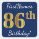 Adesivo Quadrado Azul, Faux Dourado 86.º Aniversário + Nome Persona