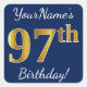 Adesivo Quadrado Azul, Faux Dourado 97.º Aniversário + Nome Persona