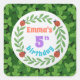 Torne o seu aniversário extra especial com este adornável adesivo personalizado com o aniversário de 5 da Emma! Projetado com joias, folhas verdes alegres e texto colorido, este adesivo redondo é perfeito para favoritos para festas, sacos de presente ou caixas de cupcake decorativas. Personalize-o com qualquer nome e idade para corresponder ao seu jardim ou à sua festa temática de inseto. Excelente para crianças que amam a natureza, insetos ou cores brilhantes!