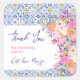 Nosso padrão de azulejo de cerâmica azul inspirado em italiano-mediterrânico emparelhado com flores cor-de-rosa pastel coloridas no verão cria um obrigado novo e moderno que você cola, que certamente impressionará! Apresentando uma forma moderna de arco e um roteiro elegante de pincel. Imprima os seus convidados com esta tendência e um design único que fará com que todos falem.
