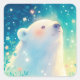 This breathtaking watercolor illustration captures a serene baby polar bear in a moment of pure wonder, gazing upward with a gentle and curious expression. The bear is nestled within a whimsical thicket of vibrant teal and emerald green leaves, accented by delicate hand-painted flowers in soft peach and cream tones. A warm, ethereal light filters down through the foliage, illuminating the bear's soft white feathery fur and sweet blushing pink cheeks. Shimmering golden bokeh lights and sparkling celestial dust dance through the bright turquoise atmosphere, creating a dreamlike, sun-drenched garden feel. Every painterly detail, from the intricate washes of light to the handcrafted textures of the botanical elements, is rendered in a whimsical "kawaii" fantasy style that radiates peace and serenity. This artwork beautifully blends the majestic presence of arctic wildlife with a dreamy, sunlit garden aesthetic, making it an irresistible piece for anyone who appreciates fine animal portraiture and mystical nature scenes. This enchanting polar bear sticker is a wonderful way to add a touch of botanical magic to the lid of a light-colored laptop or a tablet cover to inspire your daily creative focus. You could also place it on a clear reusable water bottle where the glowing turquoise and golden stardust tones will stand out beautifully against the light. It looks particularly lovely when used as a decorative accent for a springtime journal or as a peaceful character to accent a child's bedroom wall near a reading nook. Beyond personal use, this versatile item is an excellent choice for environmental awareness events, garden-themed birthday celebrations, or as a charming branding element for boutique gift shops, botanical garden cafes, and nature-inspired small businesses.