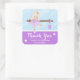 Adesivo Quadrado Ballerina Roxo Aniversário Loiro Obrigado Sq