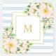 Monograma Floral Chic Pastel Blue Stripes Pquadrado. Design floral de tendência elegante com buquês pastel de colheita de rosas selvagens e verde sobre listras azuis-claras, estrutura de ouro e monograma personalizado. (Dourado não é ouro real, mas cor.) Bonito, chique, com um toque de estilo costeiro/Proveniência.