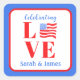 Adesivo Quadrado Bandeira Americana de Aquarela NOME Casamento