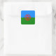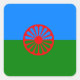 Bandeira oficial romanichel viajante de verde e azul que representa a terra e o céu com uma roda vermelha, representando viagem. Personalize este design excluindo ou alterando o texto.