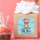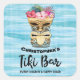 Engraçado cada hora é uma hora feliz no seu Bar de Tiki. Monograma com nome de barman para criar um adesivo decorativo com tema de bar divertido. Apresenta um Tiki bonito com a língua a sair. Flores tropicais para lembrá-lo do paraíso da ilha de praia.