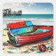 Adesivo Quadrado Barco Vermelho Velho Desertado e Naufrágio em Prai