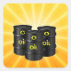 Três barris pretos de petróleo contra fundo amarelo. Esta design parece realmente eficaz nestes adesivos