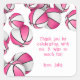 Esses bonitos adesivos de festa temática de basquete apresentam bolas de basquete rosa e brancas agrupadas à esquerda e ao topo na frente - personalize com sua mensagem pessoal - por katz_d_zynes