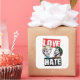 Vejam esta arte de quadrinhos de Harley Quinn e o Coringa discutindo, enquanto suas cabeças formam metade de um coração. As palavras "Amor" e "Ódio" são escritas à sua volta em caracteres negros e carimbados.