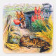 Adesivo Quadrado Beatrix Potter - Bunnies assistindo o gato