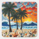 Adesivo Quadrado Beautiful Beach Scene with Palm Trees