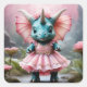 Adesivo Quadrado Bebê Adorável Dino num Vestido Rosa