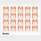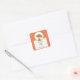 Um obrigado chá de fraldas que você cola. Projetado com um macaco bebê bonito segurando um pacificador em sua boca dentro um círculo com uma borda verde-oliva. As letras na palavra bebê estão penduradas em uma seta de estilo boho. O fundo é um padrão de bolinhas laranja e branca. Personalize com o nome do convidado de honra.