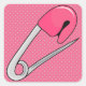 Pino de fralda cor-de-rosa giro em um fundo polkadot.