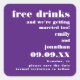 Adesivo Quadrado Bebidas Grátis Casando Roxo Salvar A Data