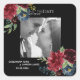 Lindos e elegantes flores bege e burgundy em um fundo preto. Absolutamente deslumbrante. Adicione sua foto de noivado cercada por belas flores a este adesivo de Save the Date. Tão elegante e romântico.