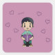 Este design apresenta uma ilustração de um menino bonito segurando uma caixa de presentes em forma de coração e o texto xoxo" Você pode personalizar o texto. Com o texto padrão, ele faz um adesivo de excelente para presentes relacionados ao amor.