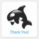 Um desenho animado giro pela baleia Orca com um pequeno coração branco perto da cauda. A mensagem diz: Obrigado!