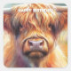 Vacas de montanha, também conhecidas como bovinos de Highland ou uma raça de bovinos amada, originários das Terras Altas Escocesas e das ilhas Outer Hebrides. Eles são facilmente reconhecíveis por seus longos e sombrios casacos e impressionantes chifres curvos. Esta linda vaca de terra alta em estilo aquarela faz um adesivo divertido. Um vinheta de aniversário feliz e divertido para amantes de os animais.