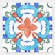 Um doce fólio floral pintado em azul, laranja e verde como visto em azulejos mediterrâneos.