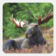 Belo alce com grandes galhadas no chão com árvores verdes no fundo. presente de excelente para sua mãe, pai, irmã, qualquer outro parente, amado, você mesmo no aniversário, aniversário, Natal ou qualquer outro dia especial.