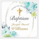 Adesivo Quadrado Belo Batismo Dourado Floral Azul Obrigado