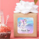 Os adesivos "obrigado você para o seu pedido" de negócios com uma imagem de um unicórnio com grandes olhos azuis, asas cor-de-rosa e uma mana e cauda arco-íris. Kawaii fofo.