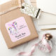 Os adesivos "obrigado você para o seu pedido" de negócios com uma imagem de um unicórnio com grandes olhos azuis, asas cor-de-rosa e uma mana e cauda arco-íris. Kawaii fofo.