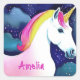 Estrelas Mágicas Belas do Unicórnio Desenhando Um Vinheta Quadrado. Estes bonitos e mágicos adesivos são perfeitos para uma garota especial. O adesivo apresenta um lindo e belo desenho de unicórnio e estrelas coloridas num céu nublado. Personalize o adesivo com seu nome.