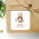Adesivo Quadrado Belo Urso de Aquarela Feliz Feriado de Natal