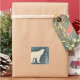 Uma design de arte divertida com um encantador Urso Polar majestoso olhando para o céu noturno ártico, enquanto grandes flocos de neve brancos fluffy caem ao seu redor.