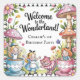 Um letreiro "Bem-vindo à Terra Maravilha!" desenhado para uma celebração mágica de primeiro aniversario. A ilustração mostra personagens divertidos inspirados por Alice no País das Maravilhas, incluindo dois Alices, um Gato Cheshire sorridente, e crianças surgindo de equipes de tamanho excessivo. Cercado por cogumelos gigantes, flores florescentes e uma borda branca e negra controlada, este charmoso trabalho de arte convida convidados para um mundo cheio de fantasia perfeito para um pequeno marco.