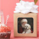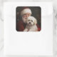Adesivo Quadrado Bichon Frise com Papai Noel Natal Festivo