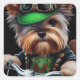Adesivo Quadrado Biewer Terrier Dog Dirigindo Ruas de bicicleta. Di