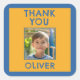 Birthday Thank you Kids Name & Photo Square Sticker. A cute birthday thank you stickers for your friends and family. Upload your photo and personalize the sticker with your name and photo. Great as thank you stickers for boys.