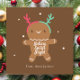 Adesivo Quadrado de Biscoito de Gengibre Rena Brilhante Espiritos. Um adorável biscoito de gengibre usando um chapéu de rena verde e vermelho. Adorável! Personalize para os detalhes do seu evento.