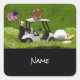 Adesivo Quadrado Bitmoney está no carrinho de golfe com bandeira da