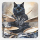 Adesivo Quadrado Black Cat Rock Star Tocando Jaqueta de couro